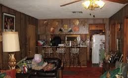 ...and has dirty orange shag carpeting, and faded purple walls. [...]