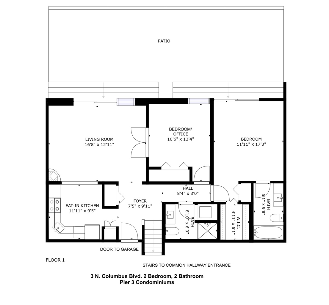 A true gated community! Most homes at Pier 3 face either north or south and I find very little difference in value between the two. South-facing units are afforded more direct sunlight and views of the New Jersey waterfront, whereas many north-facing units have lovely views of the Ben Franklin bridge. Many of the smaller one-bedroom units are interior units that look into the courtyard. We'll find many resale units to be beautifully upgraded, and a number of homes for sale will be in original condition, which explains why there's a chasm in sale prices for identical units. All homes here have at least one car (garage) parking and finding a rental spot for a second spot is catch as catch can. Many Pier 3 units have wood-burning fireplaces. There is no gas service to the building, FYI. Built as a working City pier in the 1920s, Pier 3 was converted to 172 units with interior-covered parking in 1984. It was reorganized as a condominium in 1994. Pet-friendly. Individual HVAC units. Huge common deck overlooking the Delaware River is stunning! Top-notch views! Fees include Common Area Maintenance, Exterior Maintenance, Parking, Snow Removal, Swimming, Trash Removal, digital cable. (Two maximum) are limited to 40 pounds mature weight, and units can be rented with a 30-day minimum lease term. Management is on-site. Electric is billed separately by usage. Every home at 3 N. Columbus has a parking garage parking. Exterior windows washed once a year. A total of three elevators exist at Pier 3.